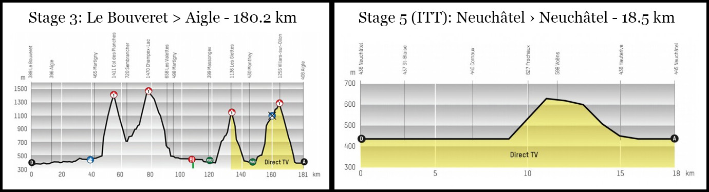 Taking the race one stage at a time: the first week kicks off with a medium distance TTT that will create a few small gaps in GC before a trio of stages for the sprinters (riders will get a day off to travel to Italy for Stage 4). Uphill finishes on Stages 5 and 6 could create some light GC action. A hilly Stage 7 closes out the first week in advance of difficult mountain stages (8 and 9) in the beginning of the second week.
