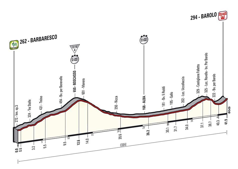 The Giro d’Italia includes an introductory team time trial, two individual time trials (one essentially a hill climb), eight flat or flattish stages, five medium mountains stages (almost all ending uphill), and five high mountain stages, each with summit finishes. The parcours favors the more climbing-oriented GC contenders over those who sacrifice uphill ability for chrono-power. Bonus seconds of 10-6-4 at the finish and 3-2-1 at intermediate sprints will benefit the explosive riders and fast finishers.