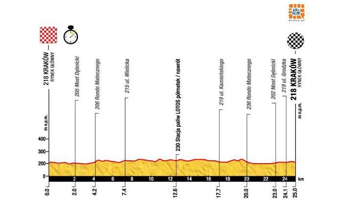 The Tour de Pologne finishes with a 25km individual time trial in Krakow. It’s flat as a pancake and will favor the big engines. Any pure climbers hoping for good GC results will be in for tough days on the bike.